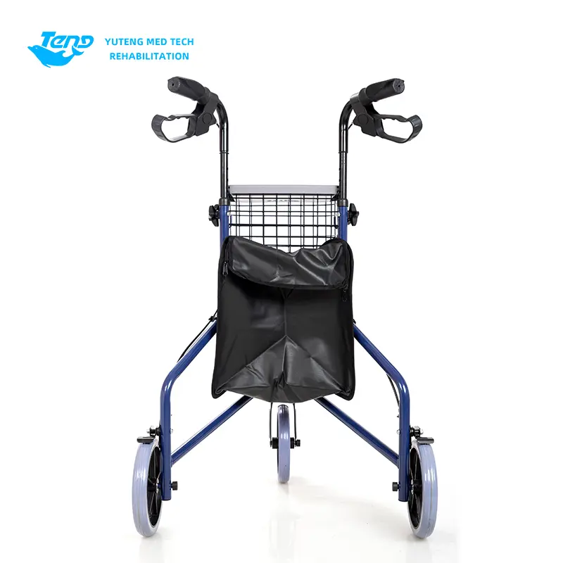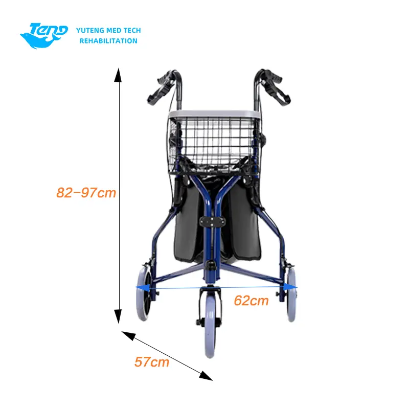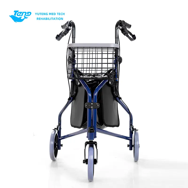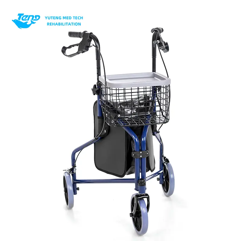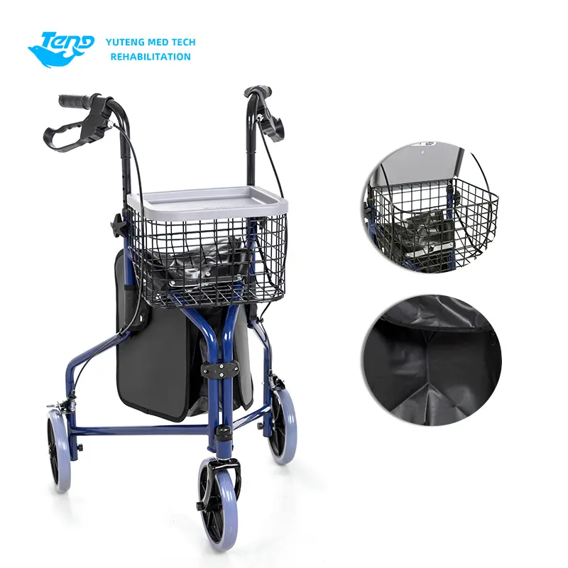 1.. Hjælpevognen er sammensat af hjul, ramme, frontgaffel, gelænderrør, bremsesystem, indkøbskurv, indkøbspose osv. Det er let, og det er et ufraviget gåstøtte, der er egnet til ældre og mennesker med gåbesvær til at gå og shoppe.
